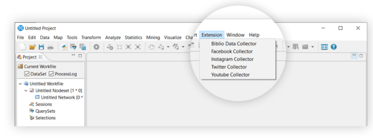 介绍:可以有14天免费试用 但是要购买的。结合了文本分析和SNA,也可以做知识图谱。它还可以加python的一些plug in。以及个人觉得它的extension挺有特色的(附了它的extension)。